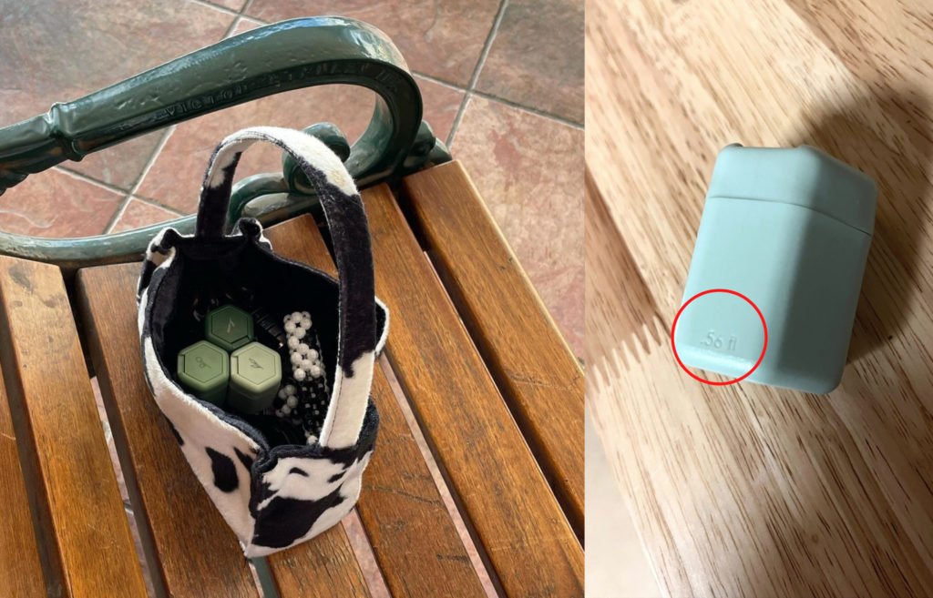 With a volume of 0.56 oz, these capsules are compact, yet they fit a surprising amount—and they don’t have any corners for my product to get trapped in. I’ve found that they can easily fit a week’s worth of cleanser or moisturizer, a month of serum, or 15-20 small pills like Tylenol. Cadence even has a “capacity calculator” on their website that tells you exactly how much of different products fits in a capsule.