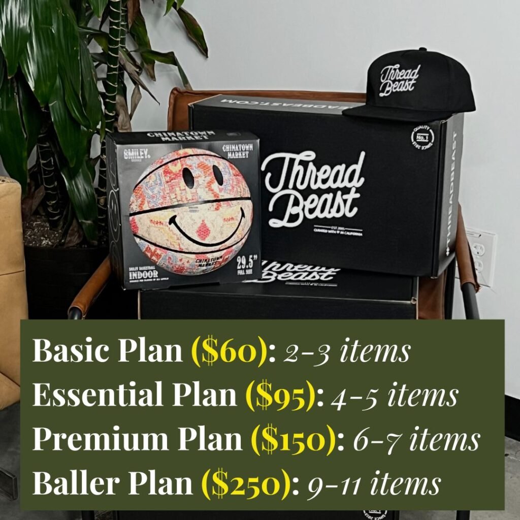They have different tiers to the subscription, so you can opt for the $60 Basic Plan (2-3 items), the $95 Essential Plan (4-5 items), the $150 Premium Plan (6-7 items), or the $290 Baller Plan (9-11 items) based on your budget. Leaning on brand partnerships and wholesale deals, ThreadBeast is able to deliver you fresh pieces from famous brands at an enormous discount.