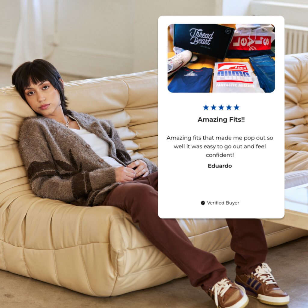 The secret sauce to ThreadBeast’s success ultimately comes down to two things: simplicity and fire clothes. New customers join by answering nine questions on their style and dress preferences, and a personal stylist curates a box for them using some big name streetwear brands.